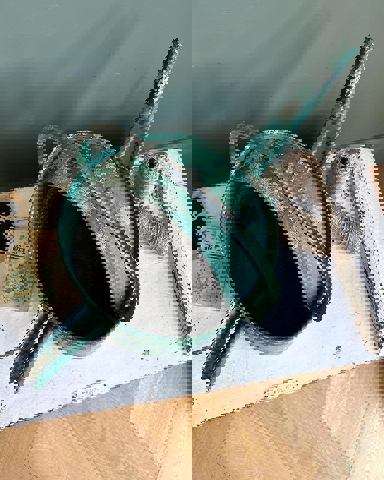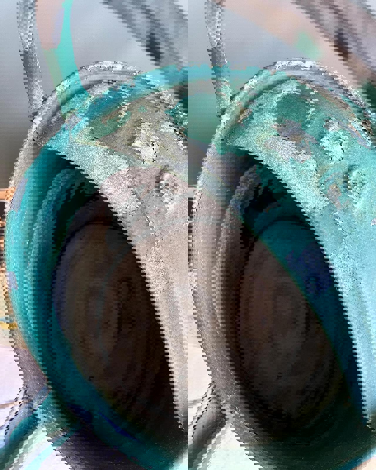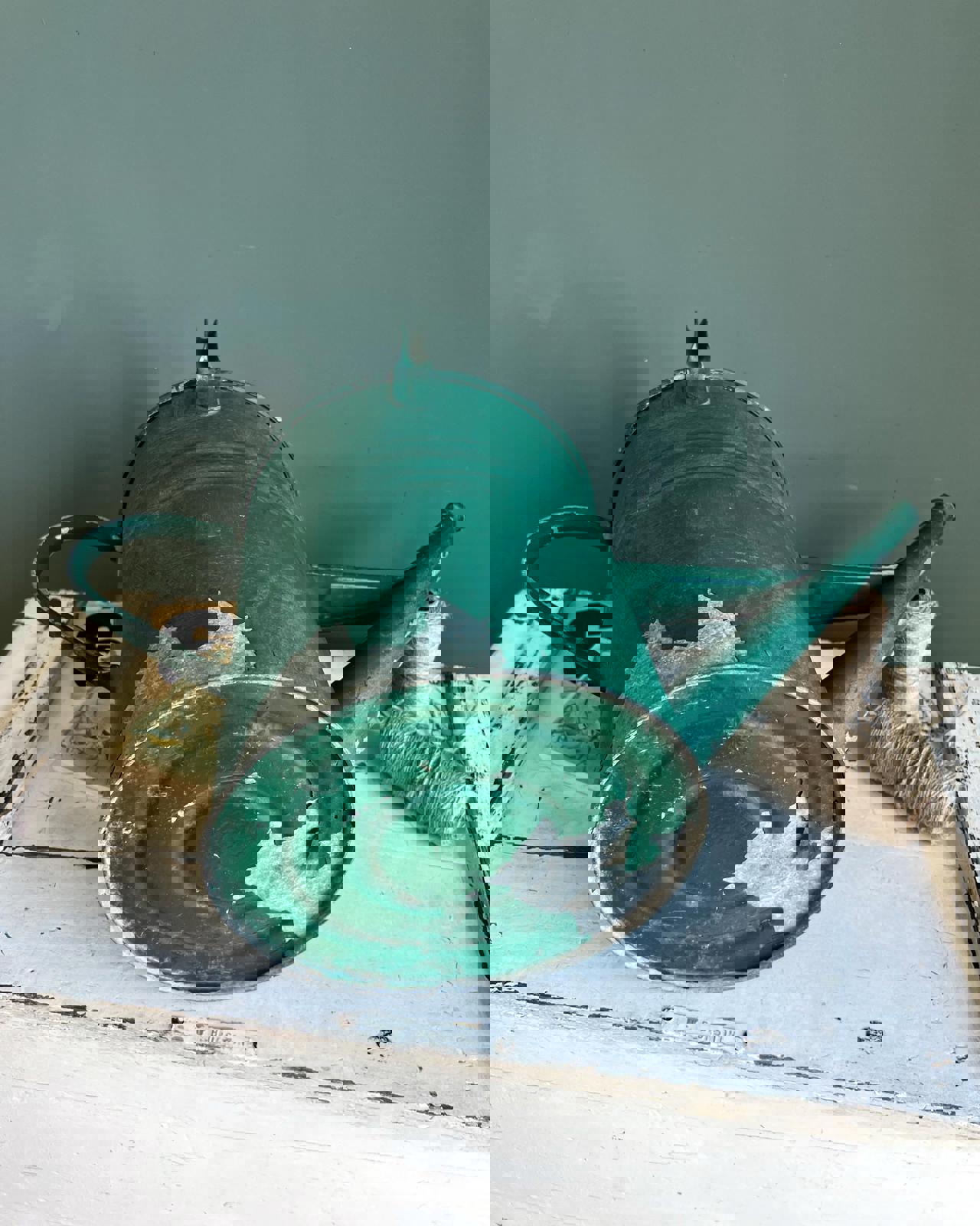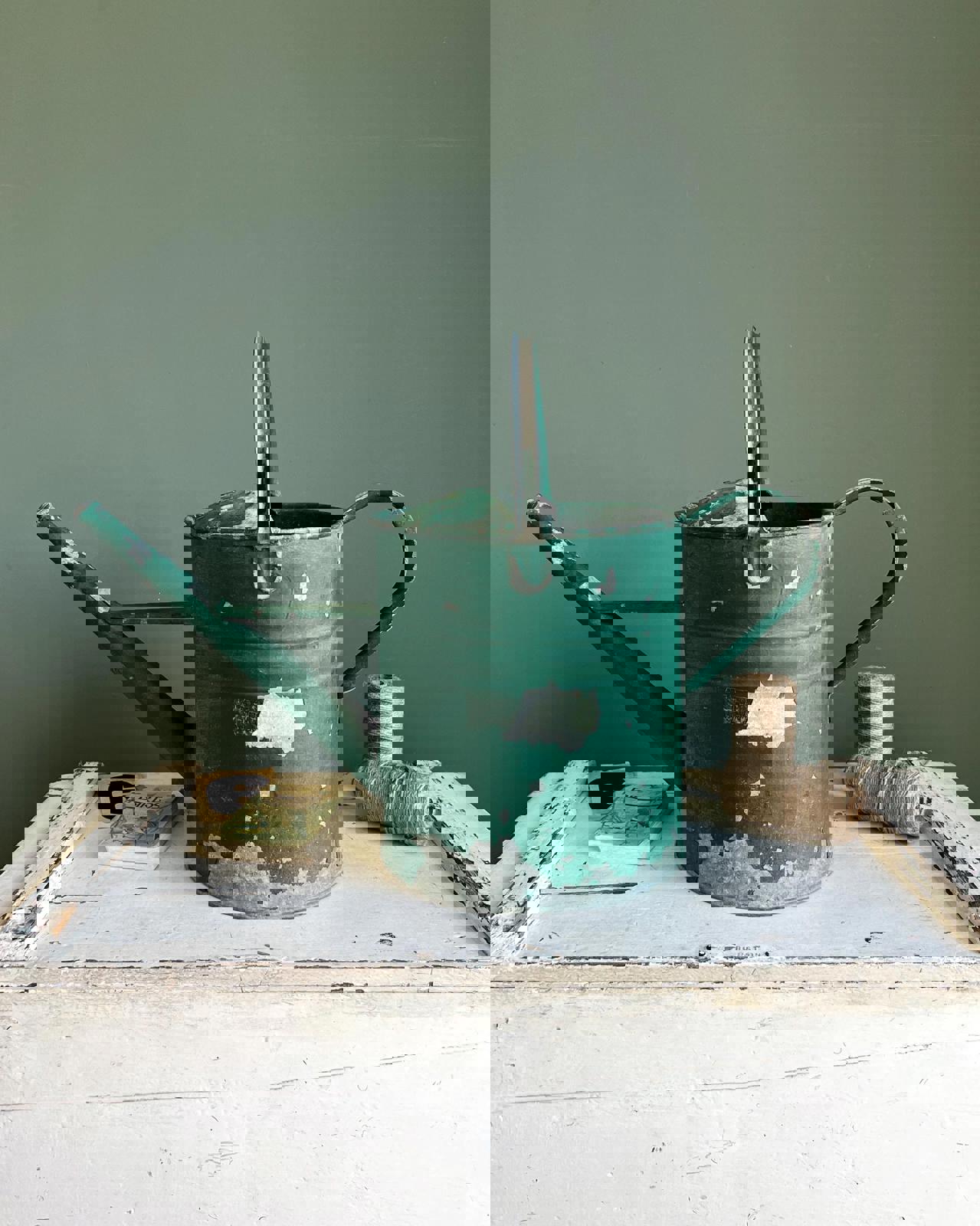 A charming and rustic watering can. The green paint is worn and chippy which adds to it's character. It would look lovely used for decoration and could be used as a garden planter.